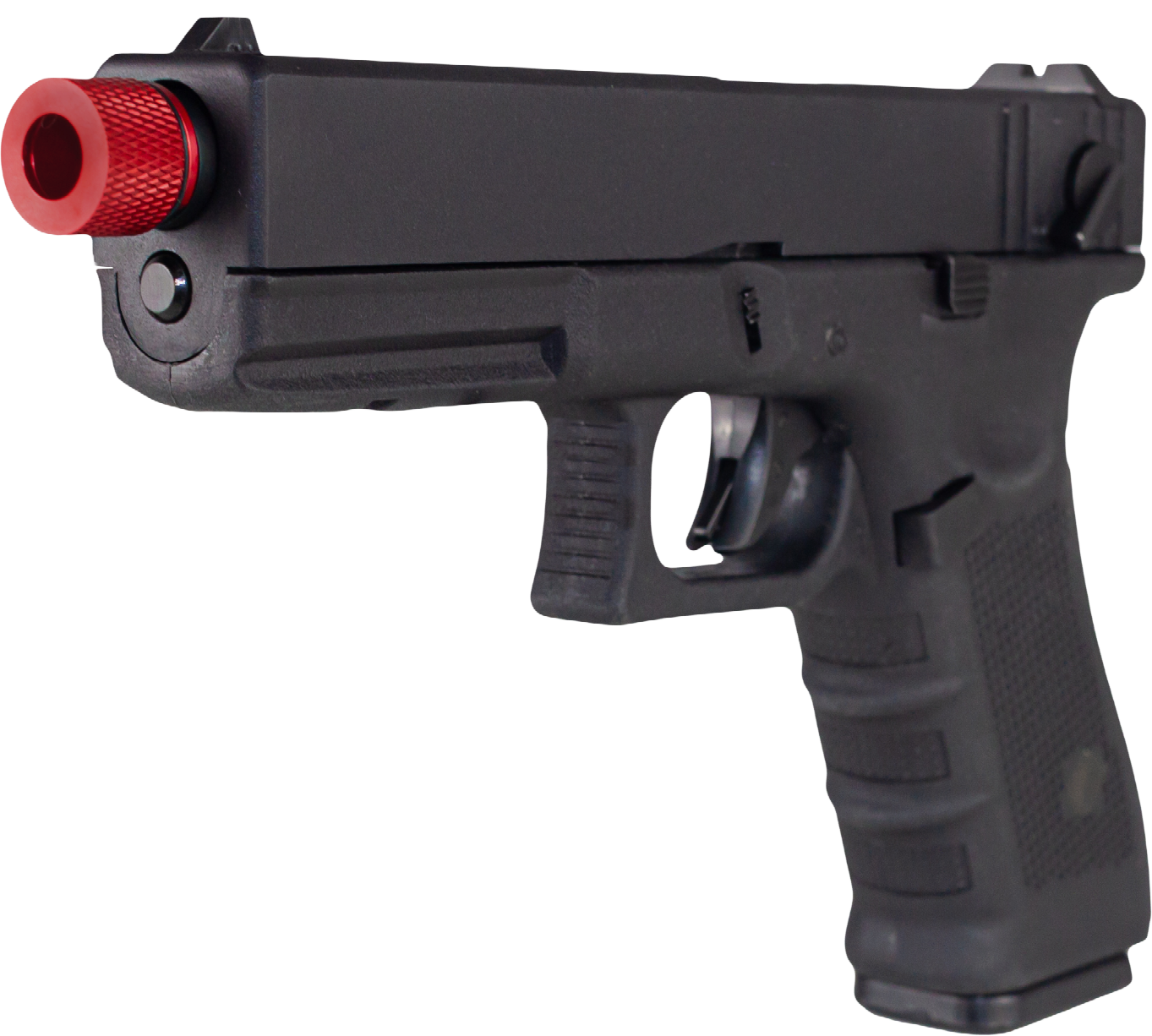 Esta Glock Airsoft possui trava manual e trava no gatilho, acessada na parte inferior, junto ao trilho.